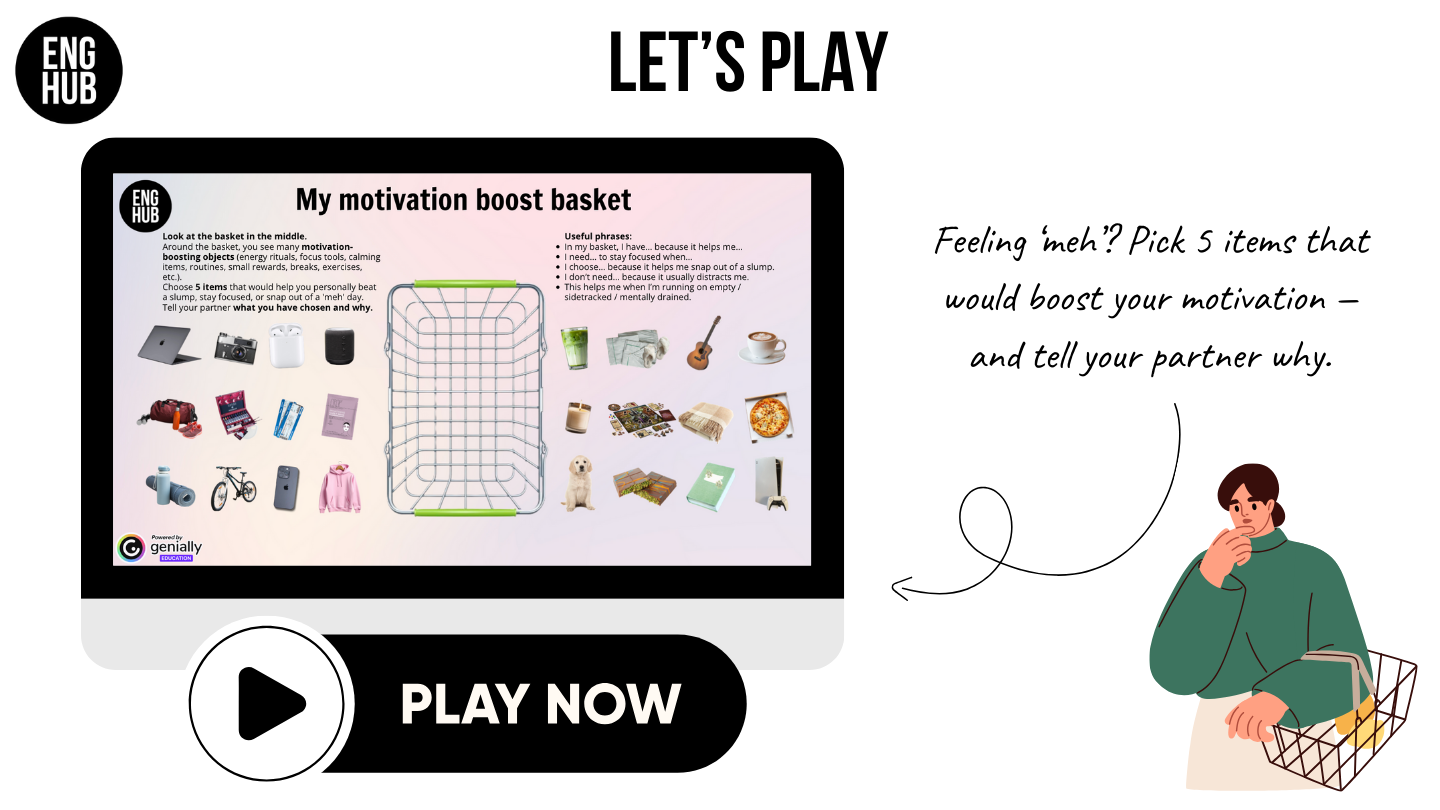 - Play the Genially “Mood Motivation Basket” game to personalise the topic.