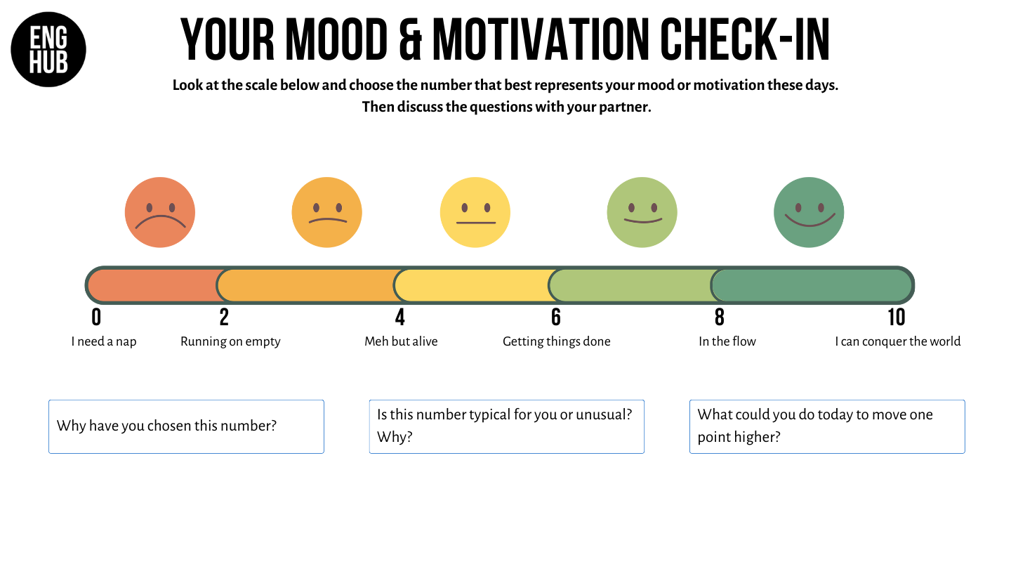 - Check your own mood and motivation using a simple mood diagram.