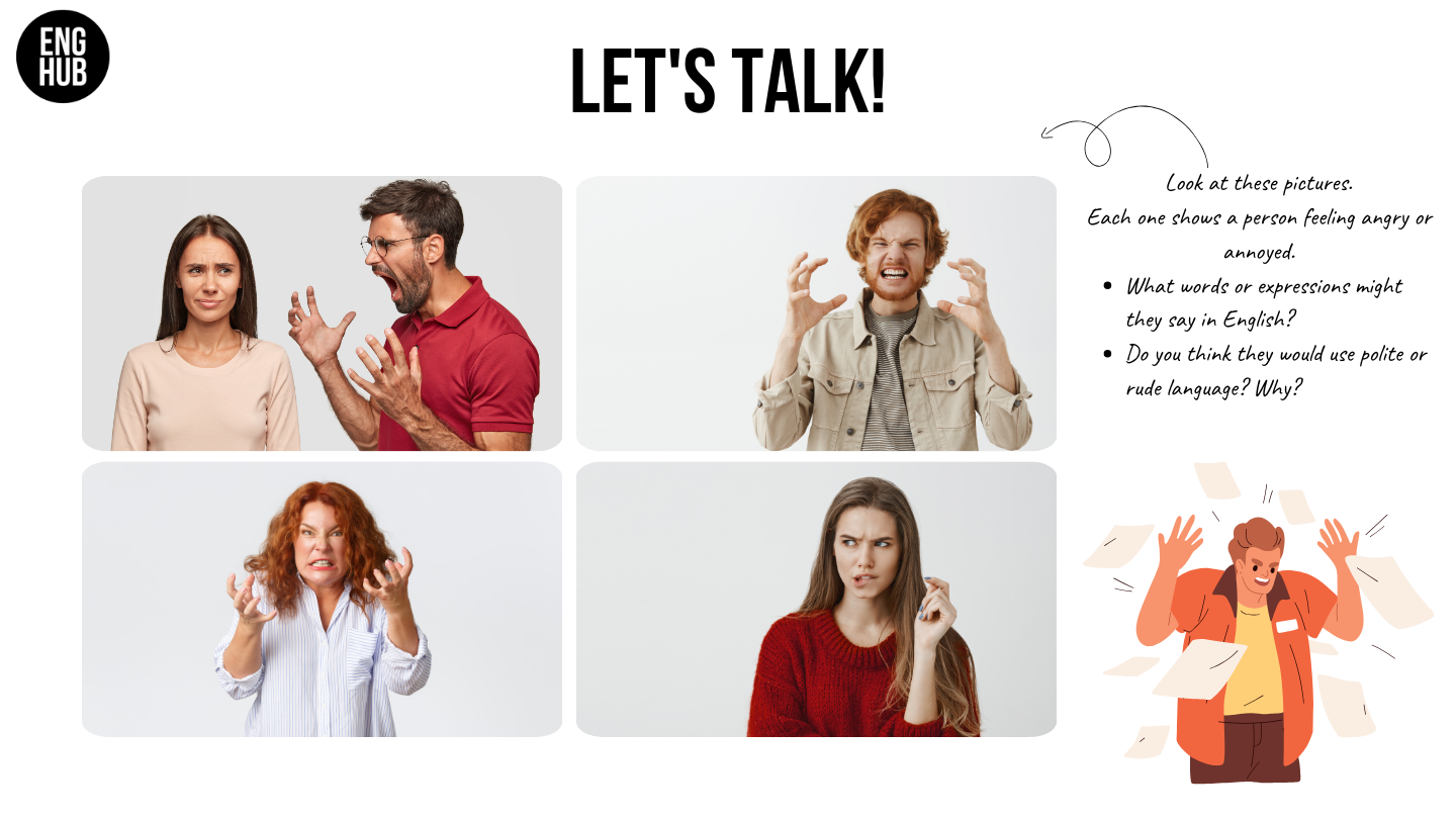 - Have a discussion about annoyance and anger.