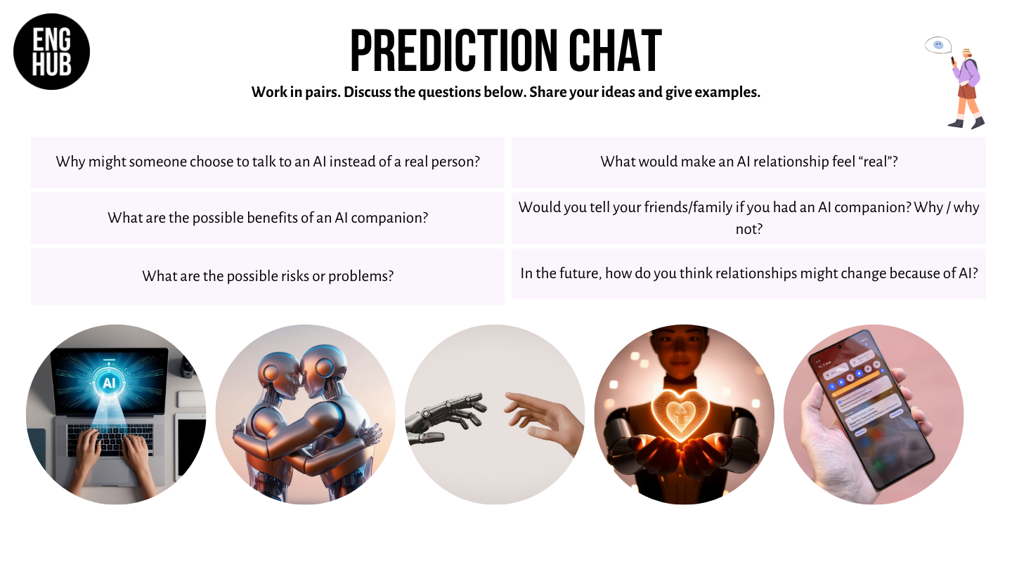 - Discuss human relationships and AI companions using a Venn diagram and reflect on what they have in common.