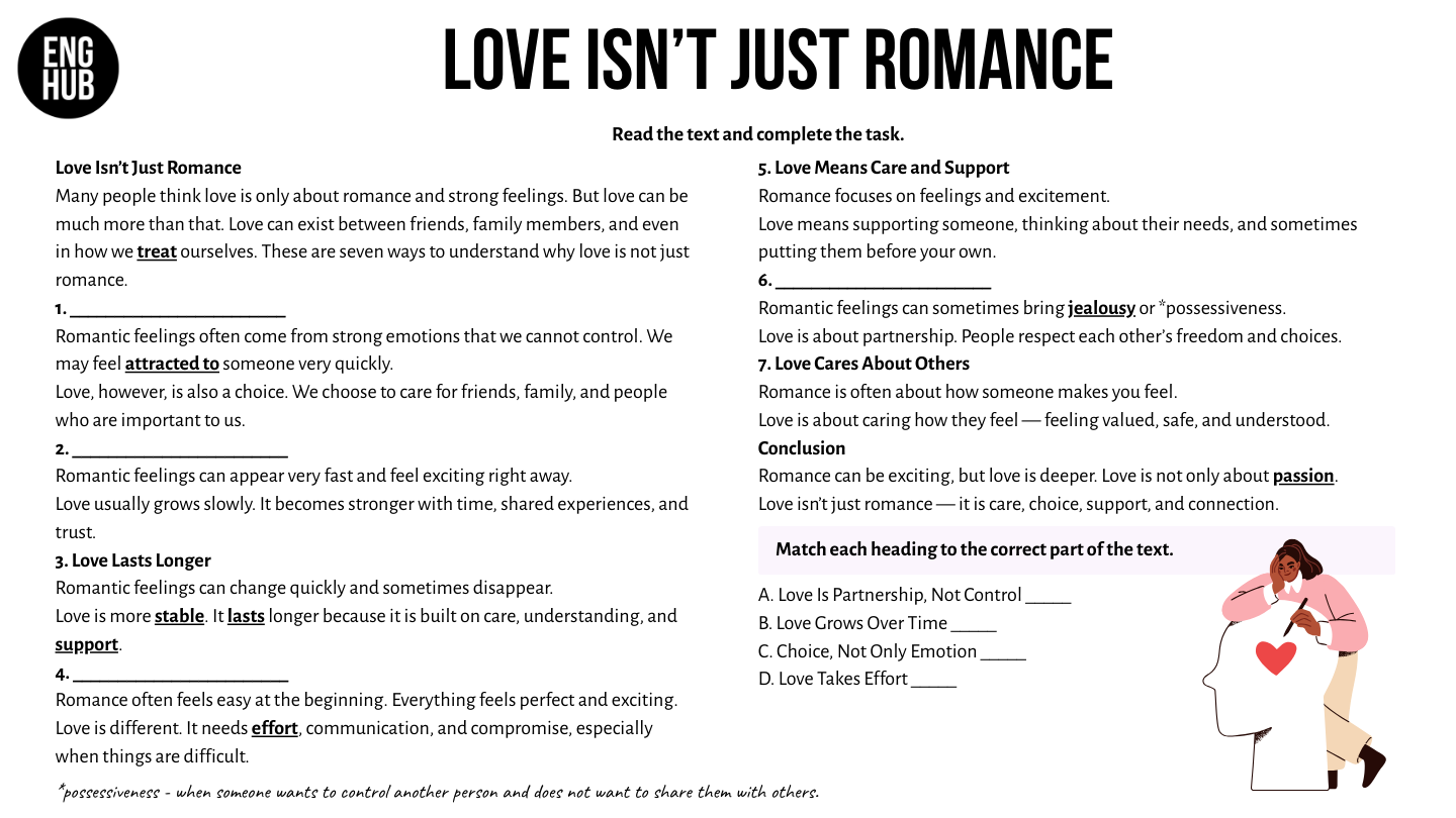 - Read the text “Love Isn’t Just Romance” and complete the related tasks.