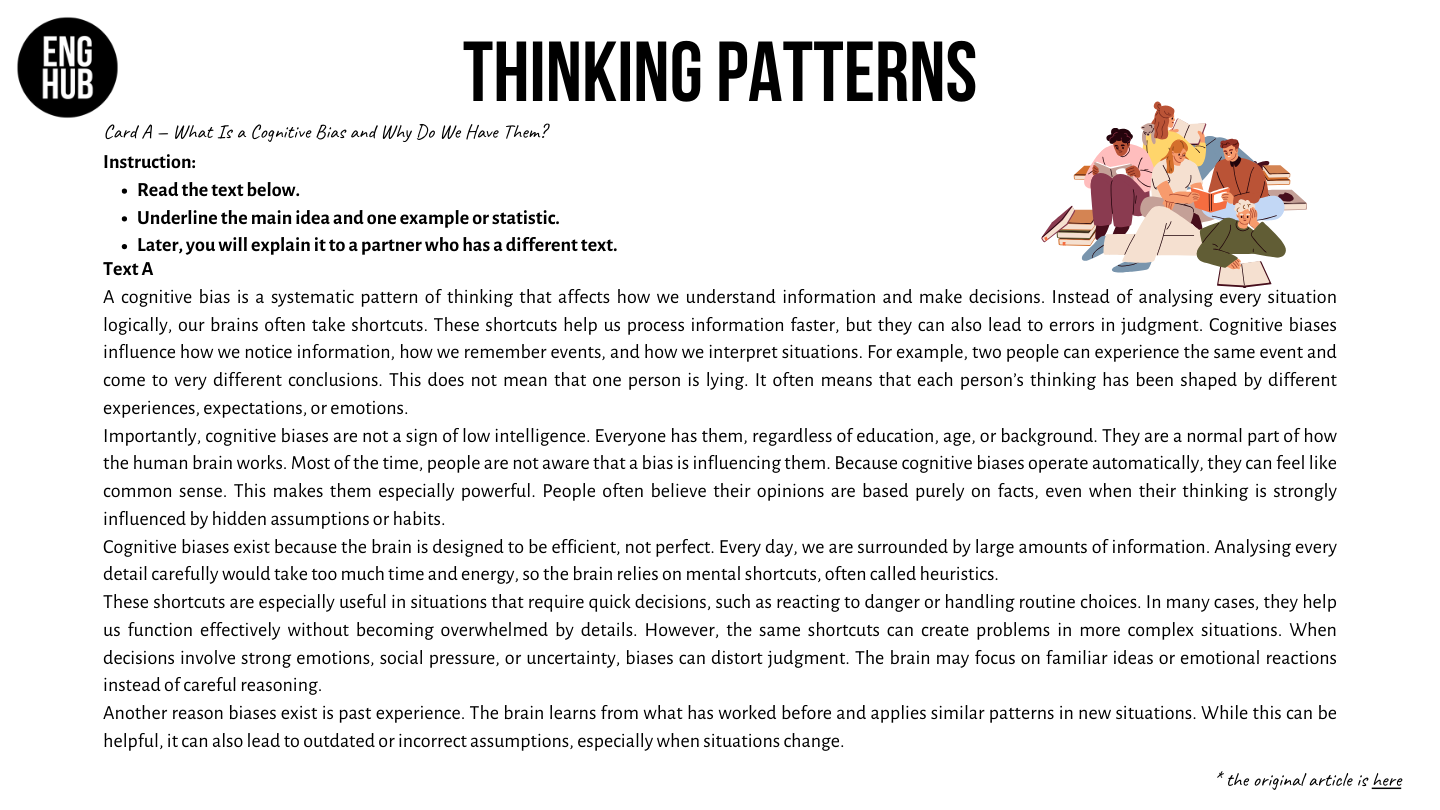 - Read a text about cognitive bias using a jigsaw reading format.