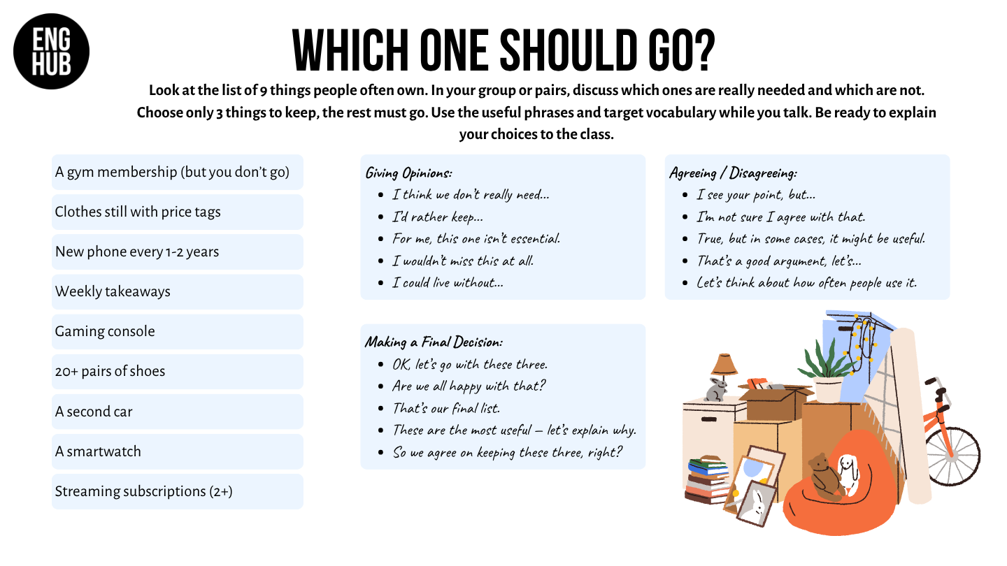 - Write a diary entry (My Stuff Has Taken Over) to reflect creatively on the topic